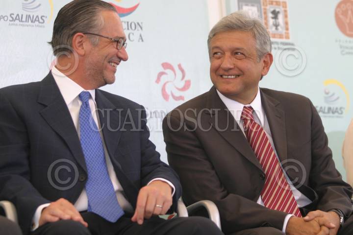 MEXICO, D.F. 13JUNIO2005.- Ricardo Salinas Pliego, y Andrés Manuel López Obrador, jefe de gobierno capitalino, durante la ceremonia de inauguración Parkelektra Zaragoza. FOTO: Sandra Perdomo/CUARTOSCURO.COM