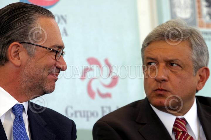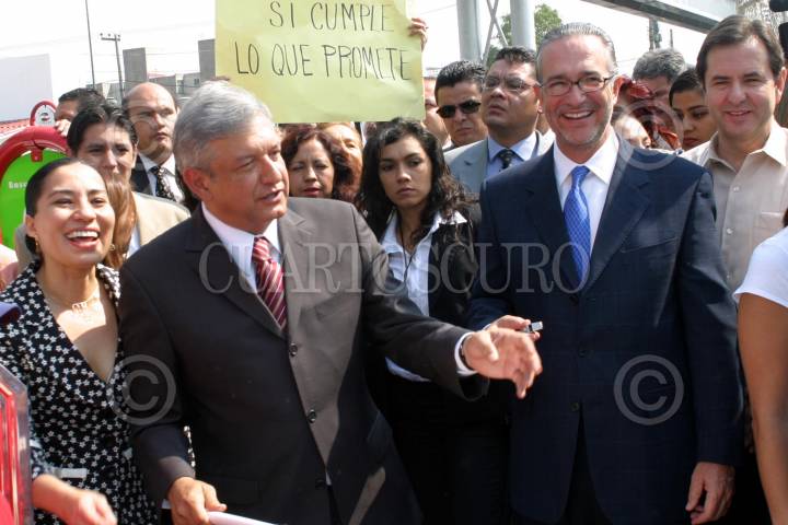 MEXICO, D.F. 13JUNIO2005.- Andrés Manuel López Obrador, jefe de Gobierno capitalino, y Ricardo salinas Pliego, presidente de Grupo Salinas, durante el recorrido realizado durante la inauguración del Parkelektra Zaragoza. FOTO: Sandra Perdomo/CUARTOSCURO.COM