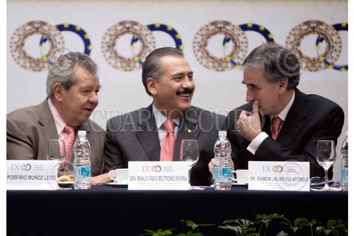 MÉXICO, D.F., 10DICIEMBRE2009.- Porfirio Muñoz Ledo, diputado federal del Partido del Trabajo, Manlio Fabio Beltrones, coordinador de los senadores priistas y Ramón Jáuregui Atondo, Presidente de la Delegación del Parlamento Europeo ante la Comisión Parlamentaria Mixta México- Unión Europea, durante la inauguración de la IX Reunión de la Comisión Parlamentaria Mixta México-Unión Europea, esto en el Senado de la República. FOTO: CUARTOSCURO.COM