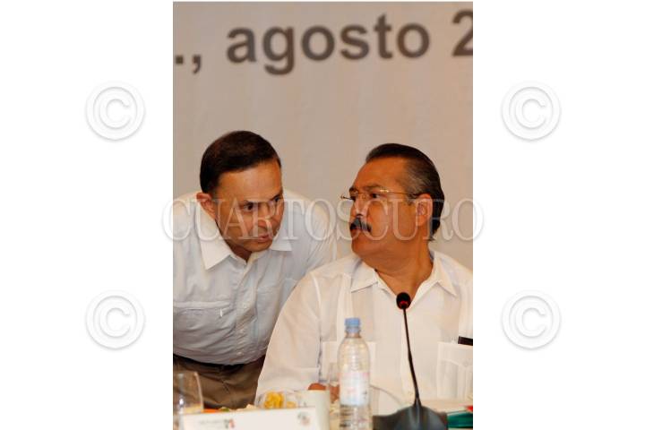 ACAPULCO, GUERRERO, 24AGOSTO2010.- El senador Fernando Castro Trenti y Manlio Fabio Beltrones, coordinador de la bancada del PRI en el Senado de la República, durante III Reunión Plenaria de los senadores del PRI. FOTO: CUARTOSCURO.COM
