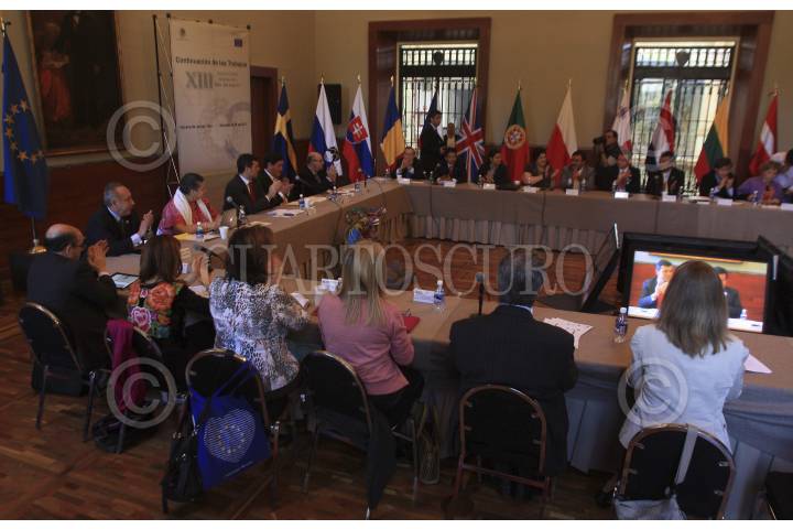 OAXACA, OAXACA, 28NOVIEMBRE2011.- Fotografía oficial de la XIII Reunión de la Comisión Parlamentaria Mixta México - Unión Europea 2011, en Palacio de Gobierno. FOTO: ARTURO PÉREZ ALFONSO/CUARTOSCURO.COM