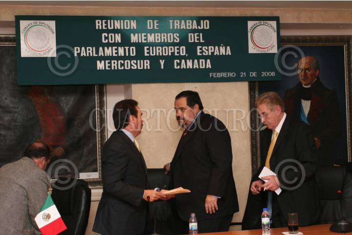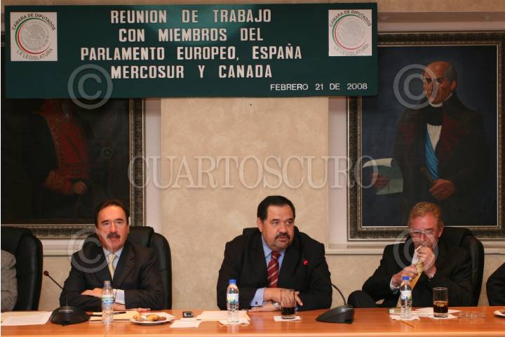 MÉXICO D.F. 21FEBRERO.-2008.-Los Diputados coordinadores de las fracciones parlamentarias del PRI, PAN y PRD, asistieron a la reunion de trabajo con miembros del parlamento Europeo, España, Mercosur y Canada. FOTO:GUILLERMO PEREA/CUARTOSCURO.COM
