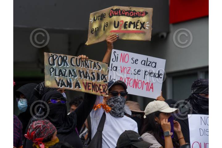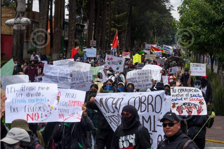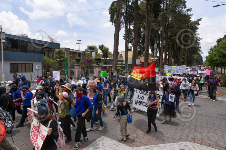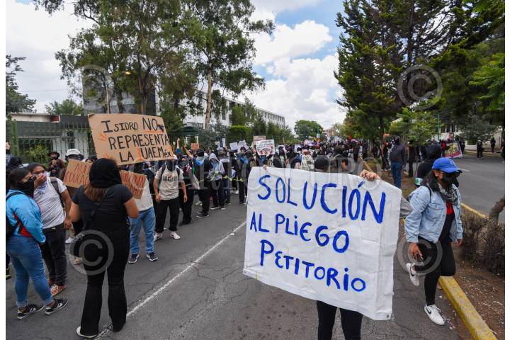 TOLUCA, ESTADO DE MÉXICO, 30 MAYO 2025.- Estudiantes universitarios marcharon nuevamente por las calles de Toluca para expresar su rechazo al proceso electoral universitario. Varias facultades de la UAEMÉX continúan en paro, no se ha llegado a un acuerdo con las autoridades universitarias. FOTO: CRISANTA ESPINOSA AGUILAR /CUARTOSCURO.COM