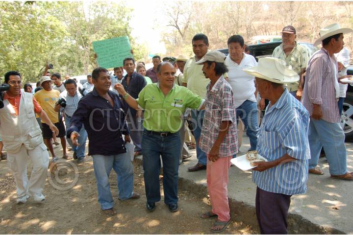 ACAPULCO, GUERRERO, 19ABRIL2009.- El alcalde de Acapulco, Manuel Añorve Baños en su recorrido por la ruta del sol donde anuncio importantes apoyos para campesinos del municipio, donde fue abordado en un reten que tienen instalado ejidatarios y comuneros integrantes del Consejo de Ejidos y Comunidades Opositores a la Presa La Parota (CECOP)” a quienes refrendo su compromiso de trabajar para un solo Acapulco. FOTO: MAINO D. VALDEZ/CUARTOSCURO.COM
