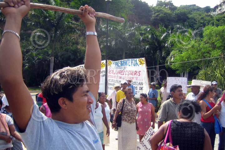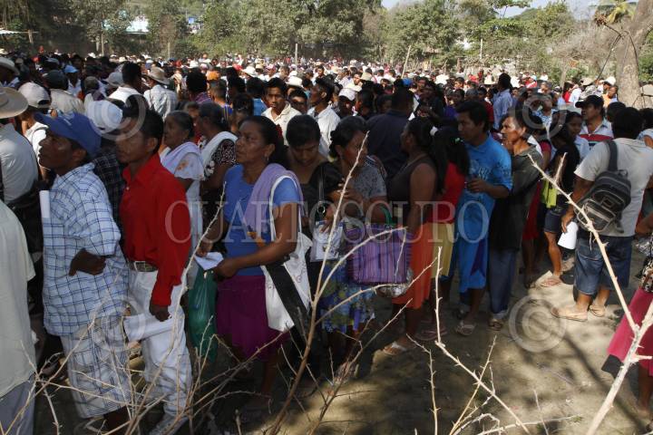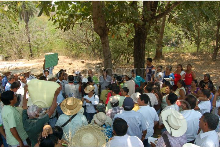 TIERRA COLORADA, GUERRERO16DICIEMBRE2005.- Se realizó la asamblea en donde se aprobó con 341 que la CFE lleve a cabo el proyecto hidroeléctrico "La parota" y sus tierras sean expropiadas e indemnizadas en un día en el que resultaron heridos trece persona por los enfrentamientos con quienes se oponen al proyecto. FOTO: Javier Verdin/CUARTOSCURO.COM