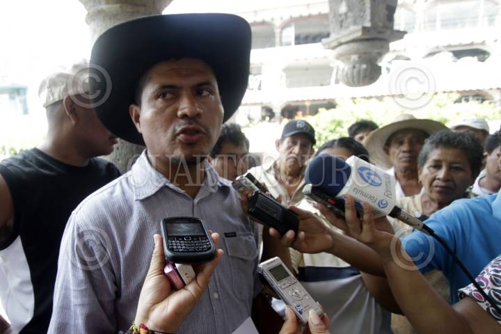 ACAPULCO, GUERRERO, 29MAYO2012.- El Consejo de Ejidos y Comunidades Opositoras a la presa La Parota manifestó su apoyo al litigante defensor de garantías, Vidulfo Vidales Sierra, integrante del Centro de Derechos Humanos de la Montaña Tlachinollan, quien abandonó el país recientemente a causa de las amenazas de muerte recibidas en un mensaje impreso el pasado 4 de mayo. El vocero del Cecop, Marco Suástegui Muñoz, subrayó que "esto evidencia que el gobierno del estado no está haciendo nada para proteger a los defensores de derechos humanos. Entre los casos que ha litigado Rosales Sierra, se encuentran los que el Cecop ha entablado en tribunales agrarios federales para invalidar las asambleas en las que supuestamente ha sido aprobada la presa La Parota, que pretende edificar la Comisión Federal de Electricidad en la zona rural del municipio, lo que provocaría el desplazamiento de miles de familias. FOTO: BERNANDINO HERNÁNDEZ /CUARTOSCURO.COM