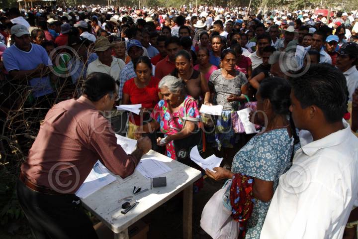 ACAPULCO, GUERRERO, 22ENERO2013.- El gobierno del estado entregó apoyos a los ejidatarios que fueron afectados por el paso de la construcción de la presa La Parota. FOTO: BERNANDINO HERNÁNDEZ /CUARTOSCURO.COM
