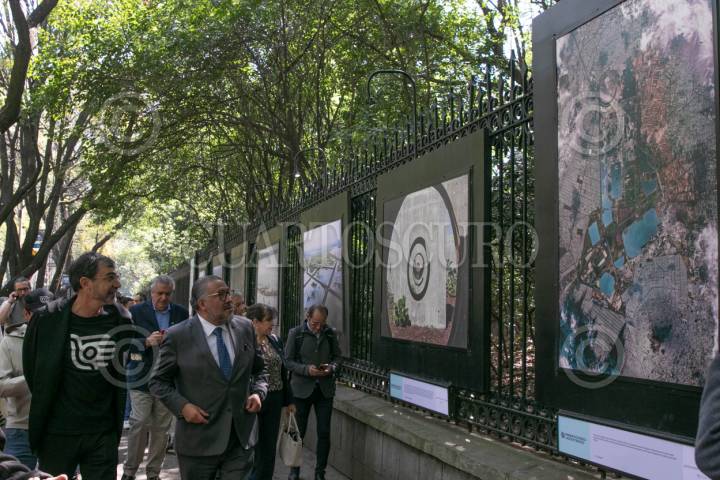 CIUDAD DE MÉXICO, 20FEBRERO2024.- Iñaki Echeverría, director del Proyecto Parque Ecológico Lago de Texcoco (PELT), y Horacio Duarte, secretario de Gobierno del Estado de México, inauguraron la exposición fotográfica "Ingeniería Viva/Infraestructura Suave" que muestra imágenes del Parque Ecológico Lago de Texcoco, el cual esta siendo proyectado en donde el gobierno de Peña Nieto iba a construir un aeropuerto. La exposición se encuentra en la rejas del Bosque de Chapultepec sobre Reforma. FOTO: MOISÉS PABLO/CUARTOSCURO.COM