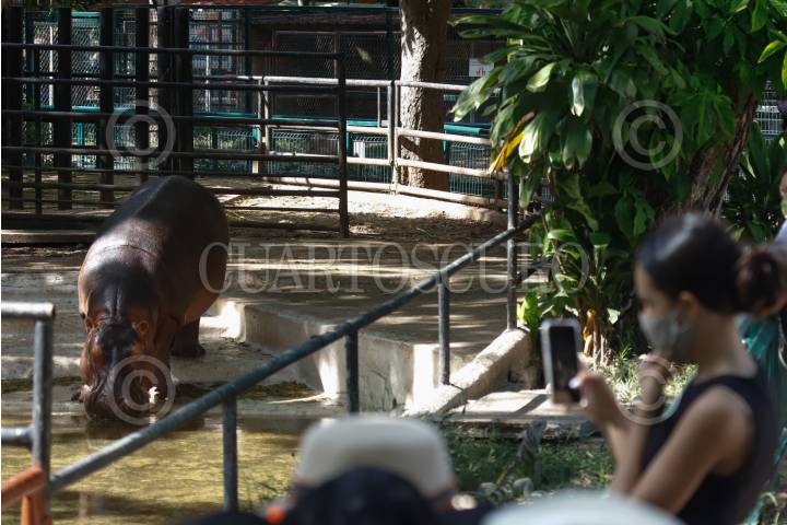 Visitantes visitaron los hipopótamos que habitan en "El Parque Zoológico del Centenario" para disfrutar el Aniversario 111 con motivo del Centésimo Aniversario de la Independencia de México