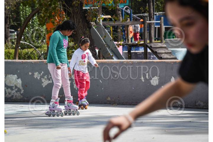 CIUDAD DE MÉXICO, 25DICIEMBRE2023.- Dos niña se divierten en el Parque Tezozomoc, con sus patines recibieron de regalo de navidad. FOTO: MARIO JASSO/CUARTOSCURO.COM