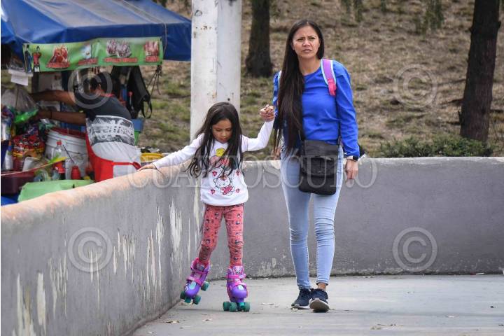 CIUDAD DE MÉXICO, 25DICIEMBRE2023.- Una niña se divierte junto a su mamá en el Parque Tezozomoc, con sus patines que recibió de regalo de navidad. FOTO: MARIO JASSO/CUARTOSCURO.COM
