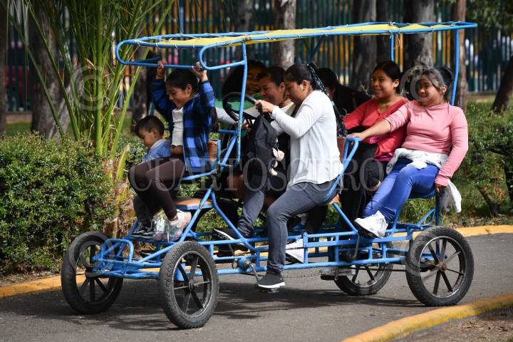 CIUDAD DE MÉXICO, 25DICIEMBRE2023.- En día de la navidad una familia disfruta de un viaje en una bicicleta compartida en el Parque Tezozómoc. FOTO: MARIO JASSO/CUARTOSCURO.COM