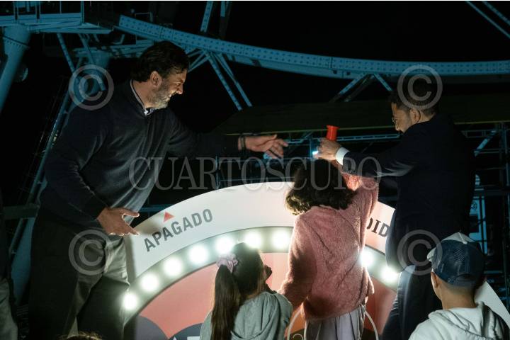 CIUDAD DE MÉXICO, 05SEPTIEMBRE2023.- El jefe de gobierno de la Ciudad de México, Martí Batres Guadarrama, y José Miguel Bejos, presidente de Mota-Engil México, realizaron el encendido de la Rueda de la fortuna Aztlán 360 en las inmediaciones del Parque Urbano Aztlán (antes Feria de Chapultepec) de la Segunda Sección del Bosque de Chapultepec. FOTO: GALO CAÑAS/CUARTOSCURO.COM