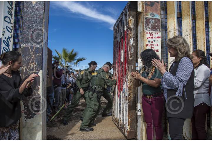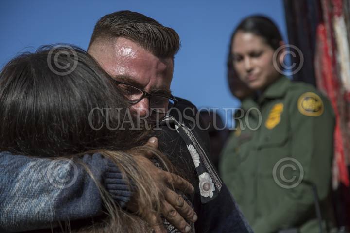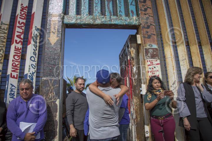 TIJUANA, BAJA CALIFORNIA, 18NOVIEMBRE2017.-Con motivo de la celebración del Día Universal del Niño, esta mañana abrieron una puerta que se encuentra en el muro fronterizo que divide a Tijuana y San Diego, ubicado en el Parque de la Amistad de Playas de Tijuana. El evento “Abriendo la Puerta de la Esperanza” organizado por asociaciones civiles en defensa de los derechos de los migrantes, que ya ha sido realizado en años pasados tiene como objetivo permitir que familias que han sido separadas por su situación migratoria puedan abrazarse por unos minutos. En esta ocasión fueron 12 familias las que pudieron reunirse después de años de no verse ni tener contacto físico. FOTO: CHRISTIAN SERNA /CUARTOSCURO.COM
