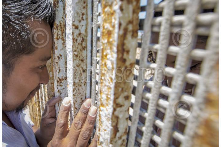 TIJUANA BAJA CALIFORNIA, 03JUNIO2018.- Familias separadas por su condición migratoria tienen la oportunidad de verse a través de una malla de acero en el parque de la Amistad, ubicado en la frontera entre Estados Unidos y México. Los encuentros se realizan sólo los días domingo y son vigilados exhaustivamente por la Patrulla Fronteriza. La imagen muestra a Felipe, quien no ha podido abrazar a su esposa e hija por más de tres años. FOTO: OMAR MARTÍNEZ /CUARTOSCURO.COM