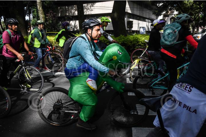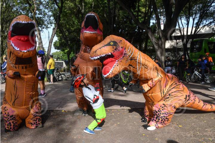 CIUDAD DE MÉXICO, 13JULIO2024.- Decenas de familias participaron en la “Dino-Rodada” que partió del Parque de los Venados rumbo a Iztapalapa. FOTO: MARIO JASSO/CUARTOSCURO.COM