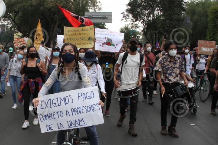 Comunidad universitaria marchó del Parque la Bombilla a la Rectoría, exigiendo el pago para docentes.