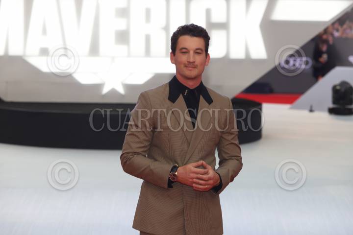 El actor Miles Teller durante la alfombra roja por el estreno de la película “Top Gun Maverick” en Parque Toreo.