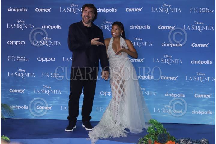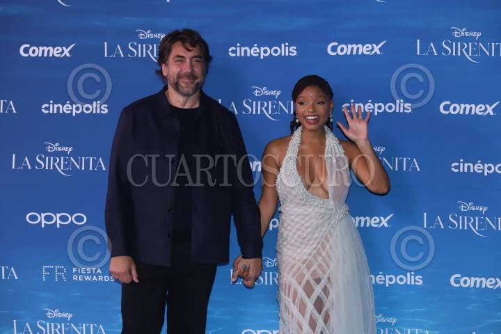 Javier Bardem y Halle Bailey a su paso por la alfombra azul por el estreno de la nueva película live action de Disney “La Sirenita”, próxima a estrenarse en salas de cine.
