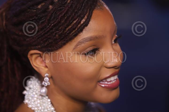Halle Bailey a su paso por la alfombra azul por el estreno de la nueva película live action de Disney “La Sirenita”, próxima a estrenarse en salas de cine.