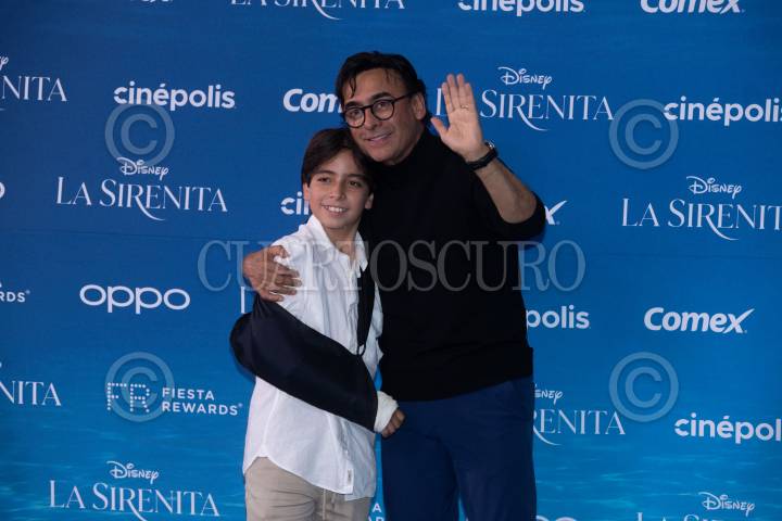 Adal Ramones y su hijo Diego a su paso por la alfombra azul por el estreno de la nueva película live action de Disney “La Sirenita”, próxima a estrenarse en salas de cine.