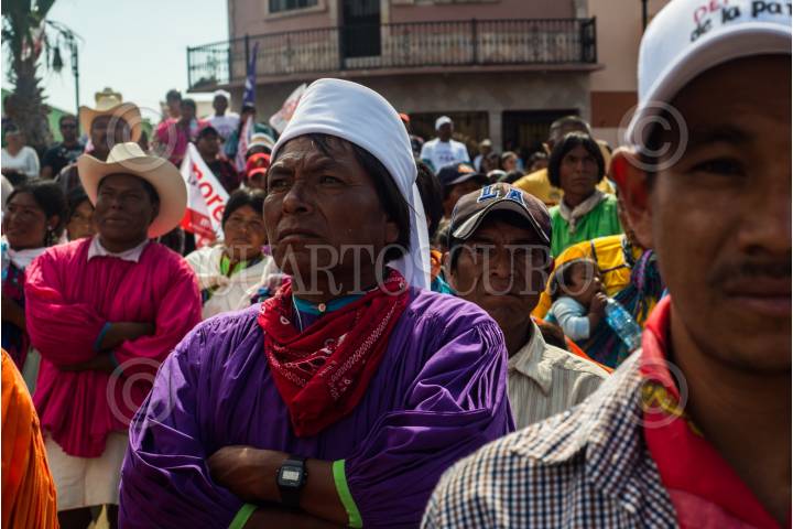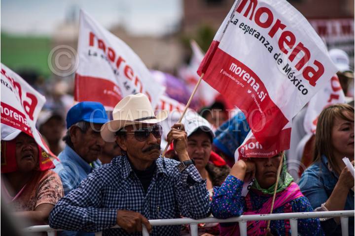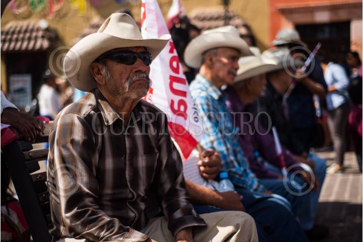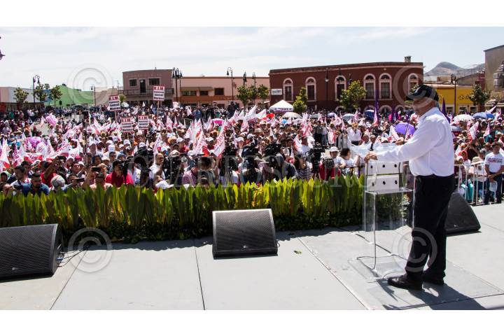 PARRAL, CHIHUAHUA, 26ABRIL2018.- Habitantes de diversas comunidades y municipios cercanos, se dieron cita en la Plaza de la Identidad en el centro de este municipio, para ver y escuchar a Andrés Manuel López Obrador, candidato a la presidencia de la república, quien compartió sus propuestas que llevará acabo en caso de ganar las elecciones presidenciales. FOTO: MISAEL VALTIERRA / CUARTOSCURO.COM