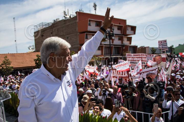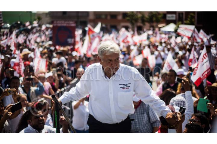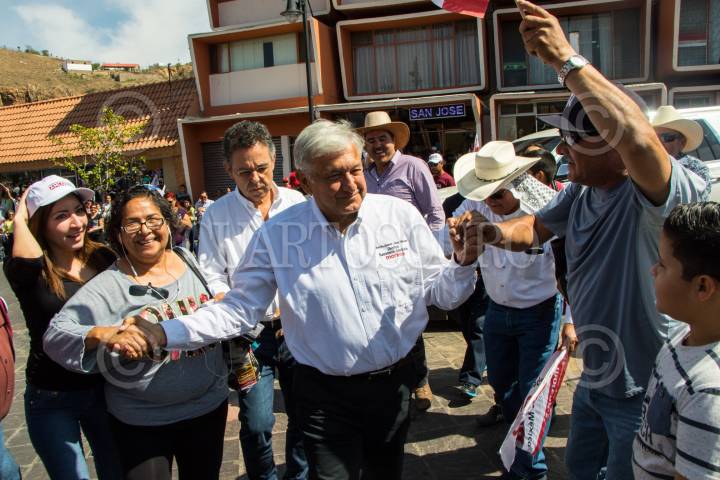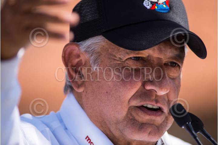 PARRAL, CHIHUAHUA, 26ABRIL2018.- Andrés Manuel López Obrador, candidato a la presidencia de la república por la coalición “Juntos Haremos Historia” de los partidos Morena, PT y PES, sostuvo un encuentro con habitantes de este municipio en donde compartió sus propuestas que llevará acabo en caso de ganar las elecciones presidenciales. FOTO: MISAEL VALTIERRA / CUARTOSCURO.COM