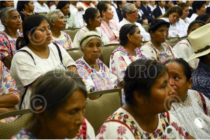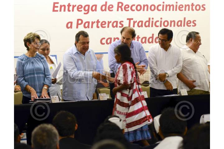 ACAPULCO, GUERRERO, 26AGOSTO2013.- Ángel Aguirre Rivero, gobernador del Estado y Mercedes Juan López, Secretaria de Salud, entregaron reconocimientos a parteras tradicionales capacitadas en la escuela oficial de parteras de la región de la montaña, así como a enfermeras especializadas en partos. El acto se efectuó en el foro Imperial, donde Mercedes Juan López señaló que se invirtieron 5 millones de pesos para la construcción del centro de salud de Iliatenco; adelantó que se asignarán 256 millones de pesos correspondientes al seguro popular para el hospital de Coyuca de Catalán, entre 2013 y 2014; y 30 millones de pesos, de un total de 109 millones, para el hospital de Chilapa. FOTO: BERNANDINO HERNÁNDEZ /CUARTOSCURO.COM