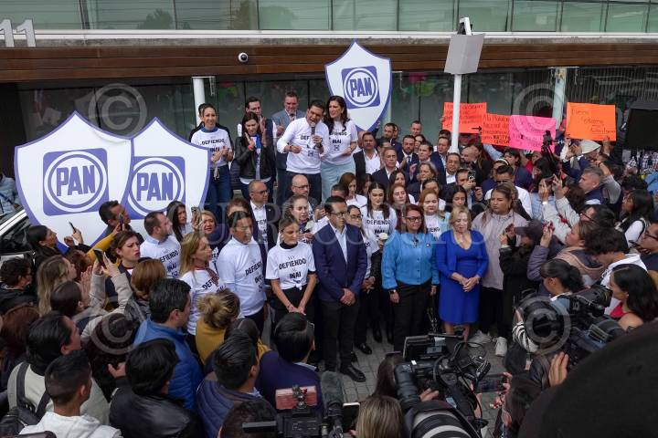 CIUDAD DE MÉXICO, 20NOVIEMBRE2024.- Militantes y simpatizantes del Partido Acción Nacional encabezados por su dirigente nacional Jorge Romero realizaron una manifestación a favor de mantener en función el Instituto Nacional de Transparencia, Acceso a la Información y Protección de Datos Personales . FOTO: ROGELIO MORALES /CUARTOSCURO.COM