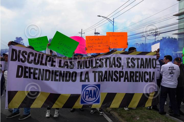 CIUDAD DE MÉXICO, 20NOVIEMBRE2024.- Simpatizantes del Partido Acción Nacional realizaron una manifestación y un bloqueo intermitente sobre la Avenida Insurgentes a favor de mantener en función el Instituto Nacional de Transparencia, Acceso a la Información y Protección de Datos Personales . FOTO: ROGELIO MORALES /CUARTOSCURO.COM