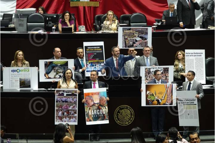 CIUDAD DE MÉXICO, 11MARZO2025.- El diputado Miguel Monraz Ibarra acompañado de diputados de la bancada del PAN, durante la Sesión Ordinaria en la Cámara de Diputados. FOTO: GRACIELA LÓPEZ/CUARTOSCURO.COM