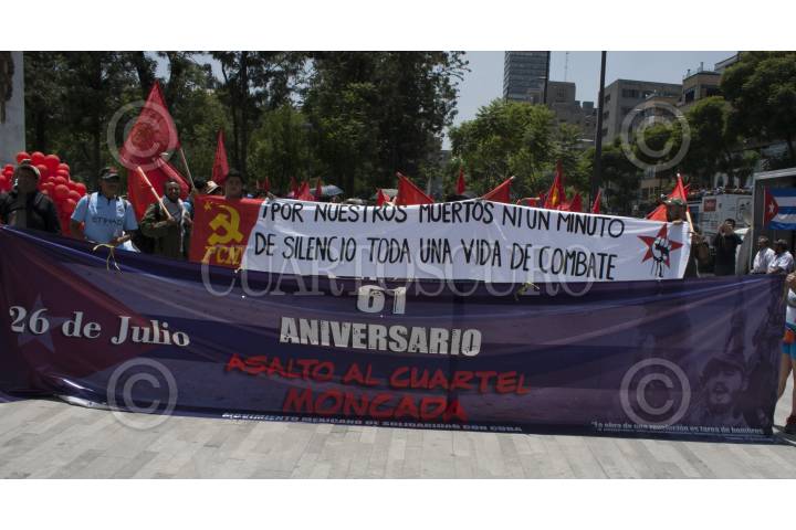 MÉXICO, D.F., 26JULIO2014. Se realizó una marcha con organizaciones civiles, el Partido Comunista Mexicano el Frente Nacional del Movimiento Urbano Popular, para exigir la liberación de los 5 cubanos capturados por supuesto espionaje. El contingente partió del Hemiciclo a Juárez hacia La Embajada de los Estados Unidos. FOTO: ADRIANA VEGA FERNÁNDEZ /CUARTOSCURO.COM