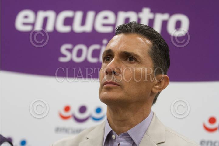 CIUDAD DE MÉXICO, 07MAYO2018.- Hugo Eric Flores Cervantes, dirigente nacional del Partido Encuentro Social, y Adolfo Ríos, candidato a la alcaldía del PES, ofrecieron una conferencia de prensa en la cual condenaron el asesinato de su dirigente de Chihuahua, Eduardo Aragón Caraveo, quien fue secuestrado el pasado 4 de Mayo, su cuerpo fue localizado en la cajuela de un auto. Mientras que el exportero Ríos, denunció como ilegal la impugnación que del partido Convergencia Querétaro realizó ante el Tribunal Electoral del Estado de Querétaro, al considerar que no cumple con los tres años de residencia que la ley electoral. FOTO: MOISÉS PABLO /CUARTOSCURO.COM