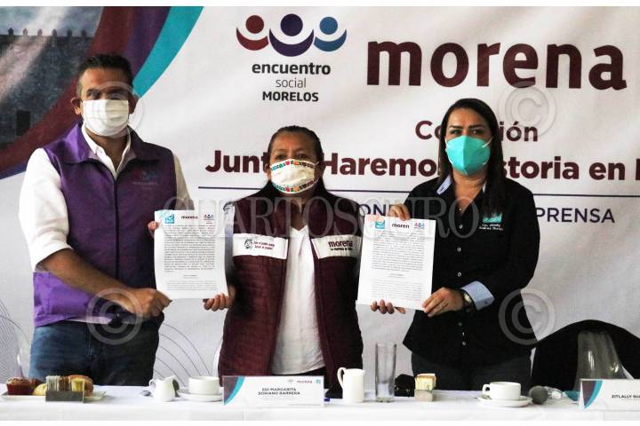 Presentan Partido Encuentro Social, Nueva Alianza y Movimiento de Regeneración Nacional la coalición electoral Juntos Haremos Historia en Morelos.