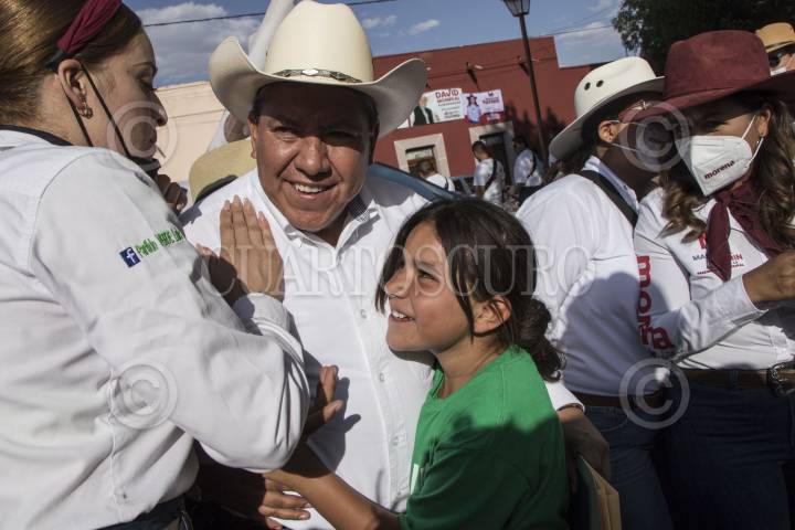 David Monreal, candidato a la gubernatura, saluda a simpatizantes en el municipio de Cuauhtémoc.