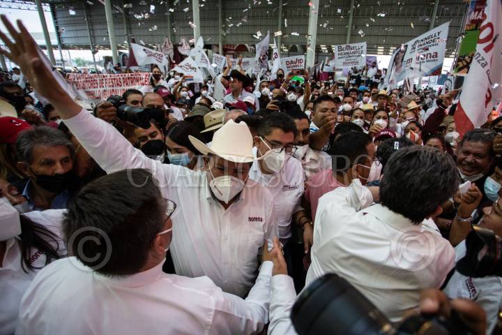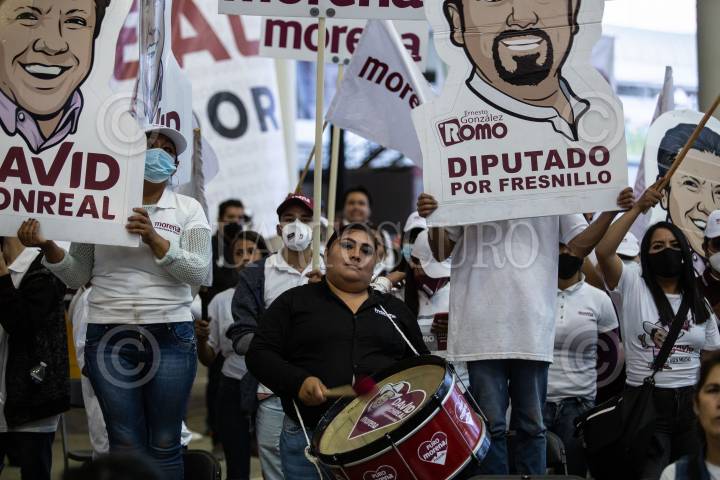 Simpatizantes de David Monreal durante mitin en Fresnillo, Zacatecas.