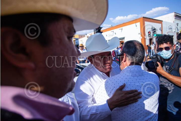 David Monreal, candidato a la gubernatura saluda a simpatizantes en Jerez, Zacatecas.
