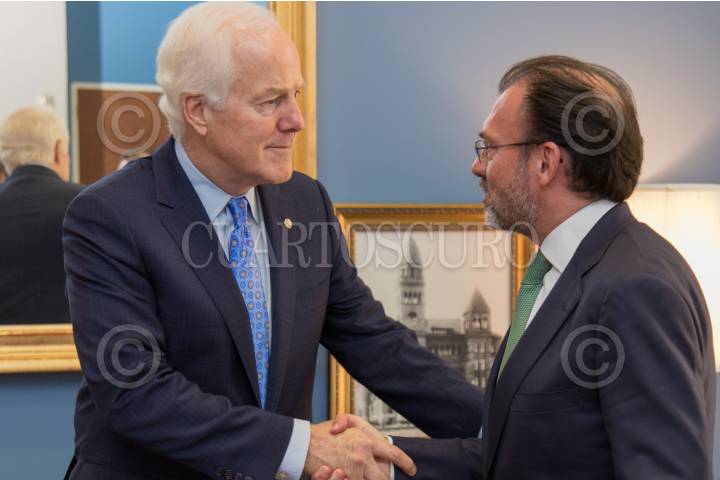 WASHINGTON, D.C., ESTADOs UNIDOS, 10JULIO2017.- El Secretario de Relaciones Exteriores, Luis Videgaray, se reunió hoy con el Senador por Texas John Cornyn, Vicecoordinador Parlamentario del Partido Republicano en el Senado estadounidense. Durante el encuentro, ambos coincidieron en la oportunidad de modernizar el TLCAN para incrementar el comercio entre México y Texas, y externaron puntos de vista sobre las condiciones en las que darán inicio las negociaciones del acuerdo, en agosto próximo. FOTO: SRE /CUARTOSCURO.COM