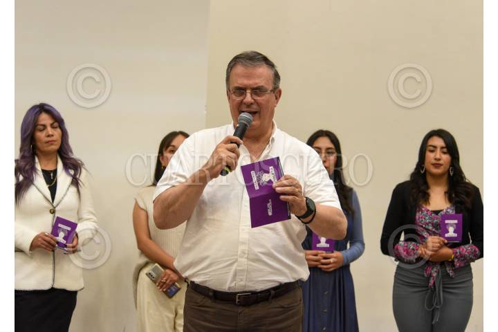 Marcelo Ebrard durante su vista a la ciudad de Toluca encabezó el Foro Jefas de Hogar en donde habló del Pasaporte Violeta.