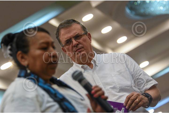 Marcelo Ebrard aspirante a la coordinación nacional de los Comités de Defensa de la Cuarta Transformación ofreció una conferencia de prensa ante medios de comunicación en donde habló del Pasaporte Violeta.