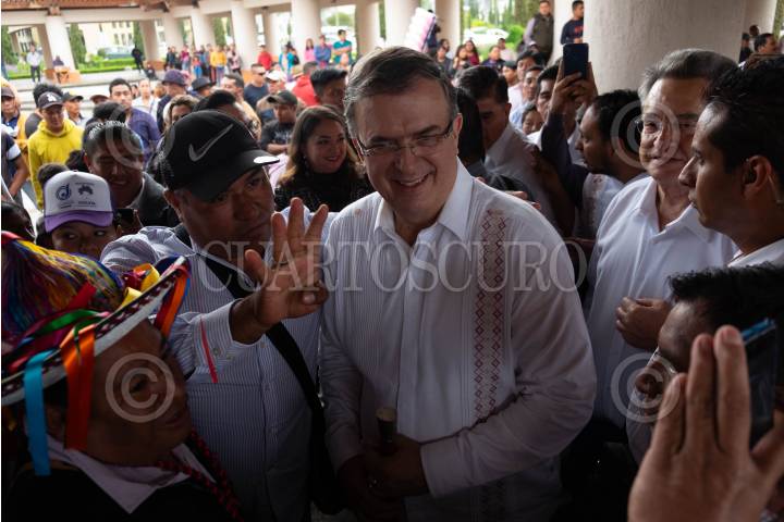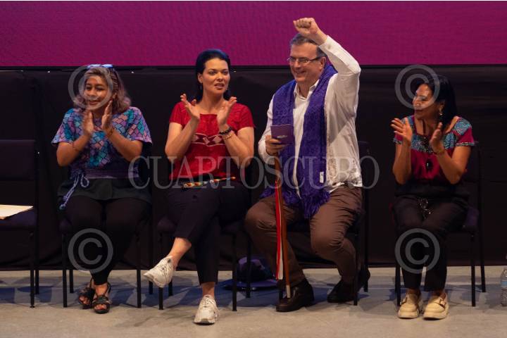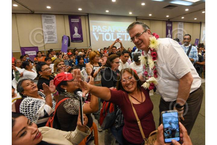 Marcelo Ebrard, quien busca encabezar la candidatura presidencial de Morena, presentó su proyecto de apoyo a las mujeres "Pasaporte Violeta", en Chiapas.