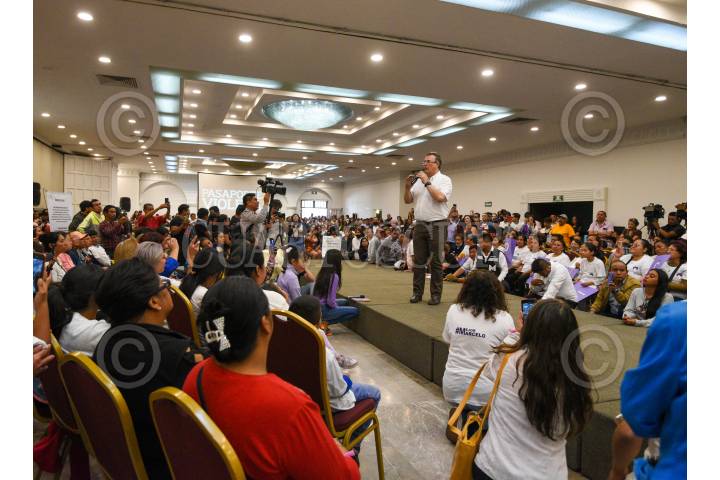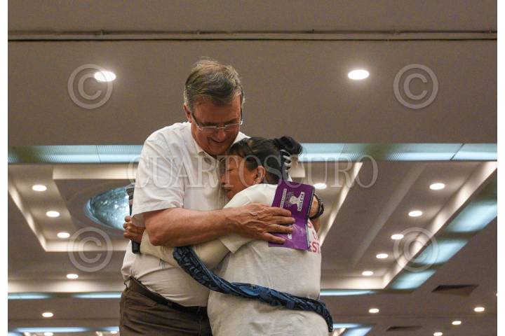 Marcelo Ebrard, aspirante a candidato Morena por la presidencia de reunió con jefas de familia en el Parque Bicentenario para presentar la propuesta de Pasaporte Violeta que sería un apoyo económico de 3k pesos a mujeres que se dediquen al cuidado del hogar.