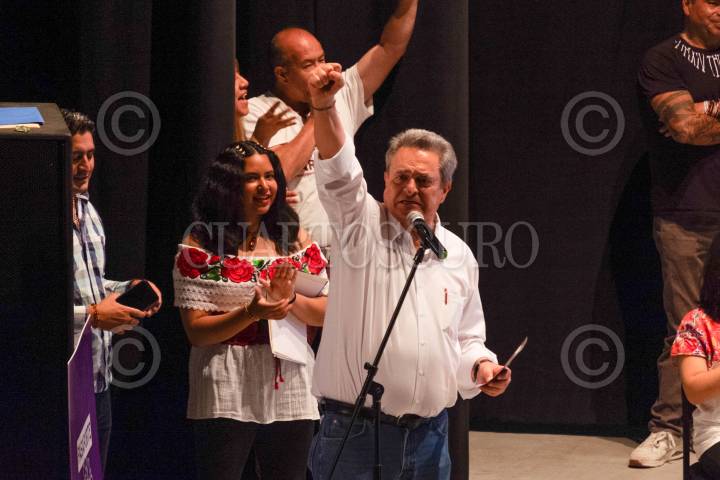 Pío López Obrador mostró su apoyo al suspirante presidencial Marcelo Ebrard durante su gira de trabajo en San Cristóbal de las Casas.