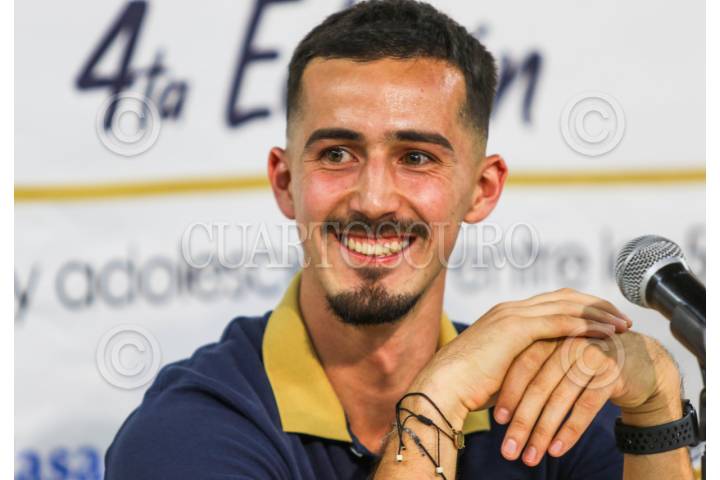 CIUDAD DE MÉXICrO. 23ABRIL2025.- El Club Universidad Nacional los invita a la conferencia de prensa del cierre de la campaña “Pasar el libro 2025”, en la que estará presente Pablo Bennevendo, defensa del primer equipo varonil, además de patrocinadores el evento se llevó acabo en la Cantera de los Pumas de la UNAM. FOTO: VICTORIA VALTIERRA/CUARTOSCURO.COM