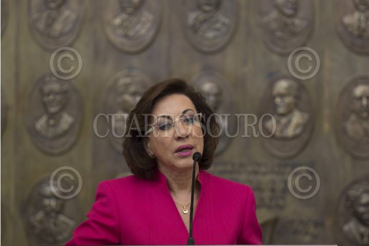 CIUDAD DE MÉXICO, 16MARZO2017.- María Guadalupe Murguía, presidenta de la Mesa Directiva de la Cámara de Diputados, durante la conferencia de prensa ofrecida, en el patio del Palacio Legislativo de San Lázaro, con motivo del Centenario del periódico Excélsior. FOTO: GALO CAÑAS /CUARTOSCURO.COM