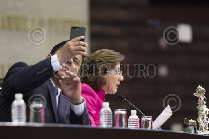 CIUDAD DE MÉXICO, 16MARZO2017.- El diputado panista Javier Bolaños, y Guadalupe Murguía, presidenta de la mesa directiva de la Cámara de Diputados, durante la sesión en el Palacio Legislativo de San Lázaro. FOTO: GALO CAÑAS /CUARTOSCURO.COM