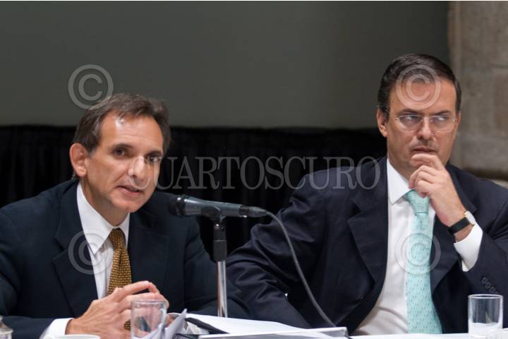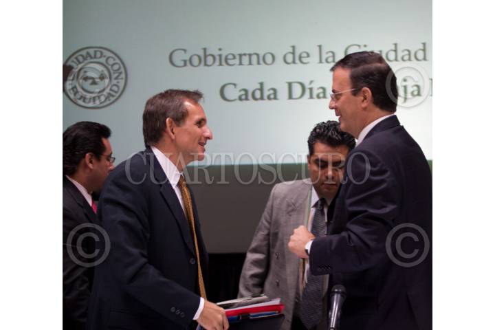 MÉXICO D.F., 26JULIO2010.- Enrique Pascual, Embajador de los Estados Unidos, acompañado de Marcelo Ebrard Casaubon, Jefe del Gobierno Capitalino, durante la Instalación del Comité del Sistema de Administración Ambiental de la Administración Pública del Distrito Federal. FOTO: GUILLERMO PEREA/CUATOSCURO.COM
