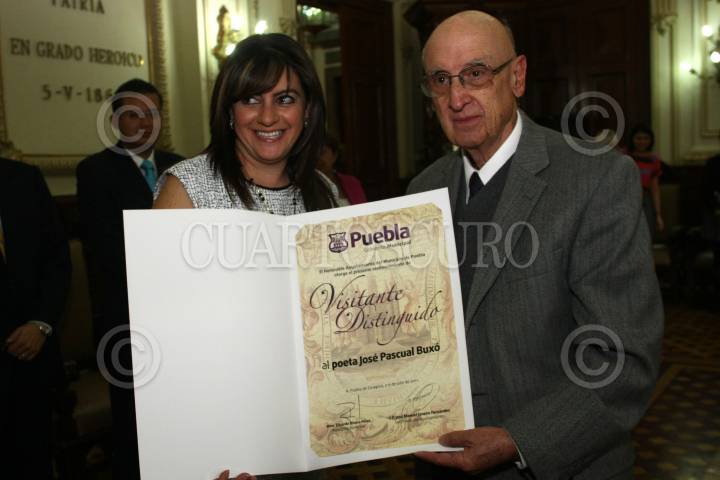 PUEBLA, PUEBLA, 06JULIO2011.- La comuna de Puebla, entregó el reconocimiento de visitante distinguido al poeta, José Pascual Buxó, acto que tuvo lugar en el salón de cabildos municipal. FOTO: FRANCISCO GUASCO/CUARTOSCURO.COM
