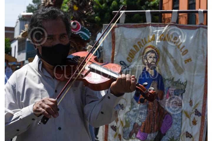 METEPEC, ESTADO DE MÉXICO, 10JUNIO2025.- Una mujer carga su imagen de San Isidro Labrador participando en el tradicional Paseo de la Agricultura 2025. FOTO: CRISANTA ESPINOSA AGUILAR /CUARTOSCURO.COM