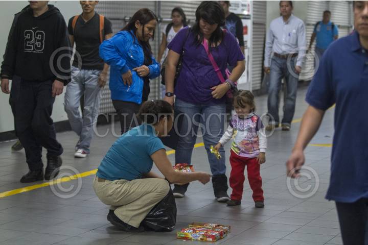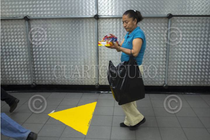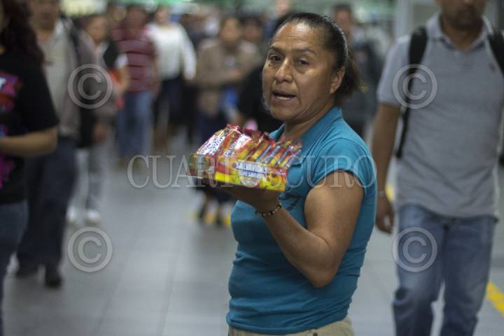 MÉXICO, D.F., 05FEBRERO2014.- Doña Ilaria Sánchez, originaria de Toluca, lleva trabajando mas de 35 años como vendedora en el Sistema de Transporte Colectivo Metro mayor mente en las estaciones de Pino Suarez, Bellas Artes y Salto del agua donde lleva aproximadamente los últimos 15 años. Actualmente Ilaria basa todos sus ingresos en la venta de dulces en los pasillos del Metro, actividad que le ayuda a pagar un modesto cuarto en la calle de Academia en el Centro Histórico a demás que de los ingresos que obtiene paga la escuela y los gastos que tiene una de sus tres hijas la cual estudia Derecho y lleva mas de la mitad de su carrera cursando. La mayoría de los Vagoneros y Pasilleros en voz de sus 18 representantes en las diferentes líneas del metro están de acuerdo con las propuestas del Gobierno Capitalino de dejar el Transporte siempre y cuando se llegue a un acuerdo que beneficie a las dos partes. FOTO: ENRIQUE ORDÓÑEZ /CUARTOSCURO.COM